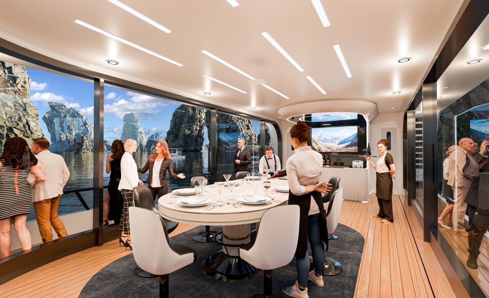 Mẫu tàu Composite - BanYanTree đươc thiết kế để phục vụ cho việc tăng cường trải nghiệm ẩm thực trên lòng hồ hoặc lòng sông.